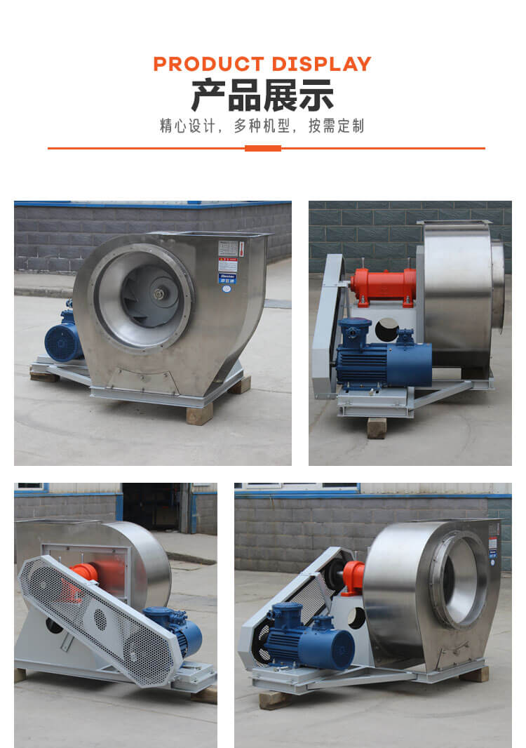 不銹鋼離心風機:不銹鋼材質具有較強的抗腐蝕性能,適用于對腐蝕要求不是特別嚴格的環境。