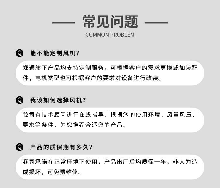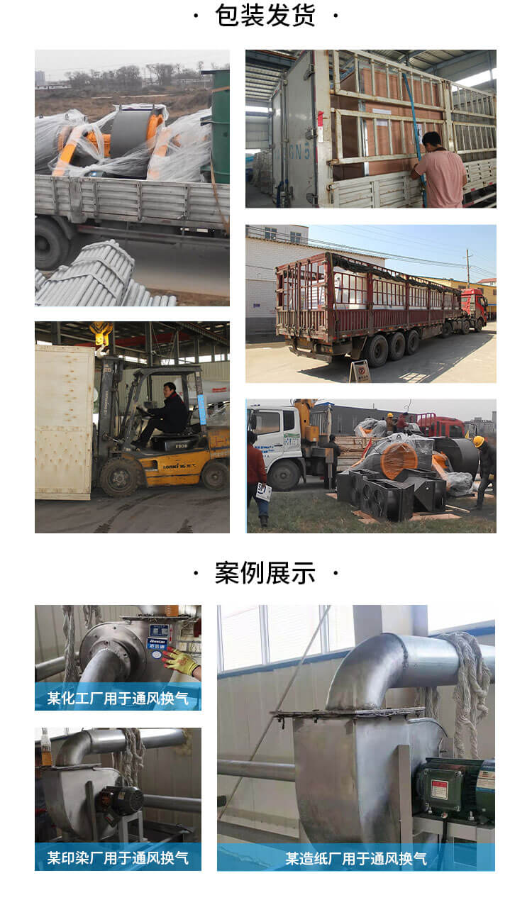 一般作為工廠及建筑物的室內通風換氣,既可用作輸入氣體,也可用做輸出氣體,對變風量系統更為適用。輸送氣體種類為空氣和其他不自燃的、對人體無害的氣體。氣體內不許有黏性物質,所含的塵土及硬質顆粒物不大于150mg/m3。氣體的溫度不超過80°C。