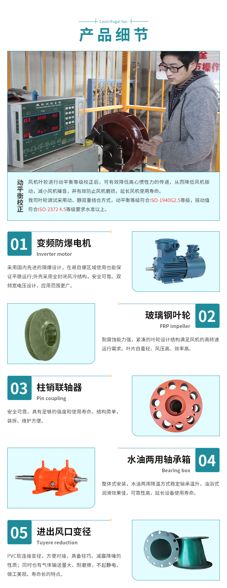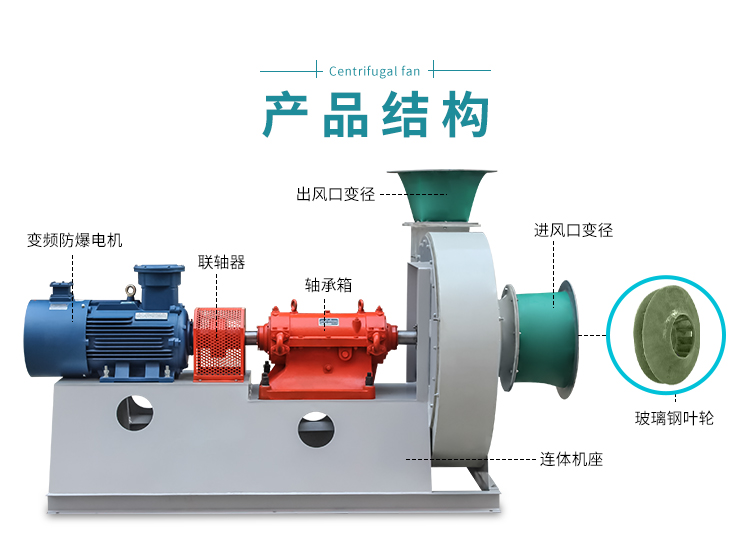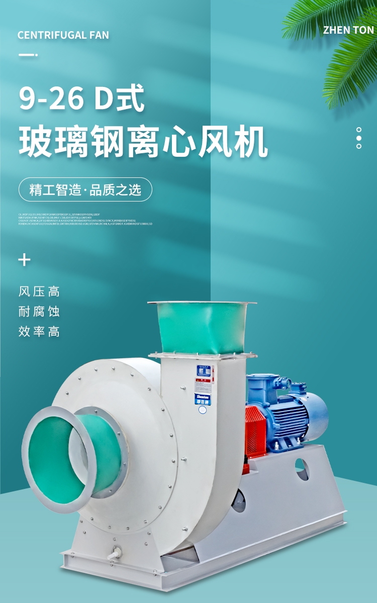 主要由玻璃鋼材質制成,大機號也可以制成皮帶驅動,耐腐蝕性好、不易老化。噪聲低、重量輕。