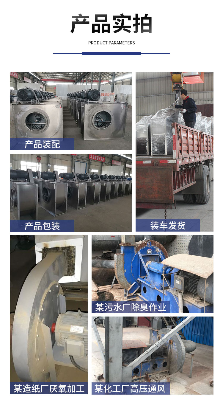 外殼及風輪采用不銹鋼風機材質焊接而成,耐高溫,能有效防酸堿、防腐蝕
