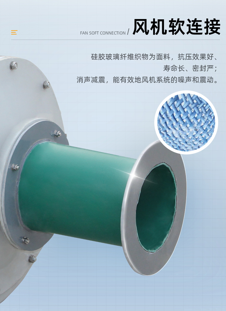 要由玻璃鋼材質制成,大機號也可以制成皮帶驅動,耐腐蝕性好、不易老化。噪聲低、重量輕