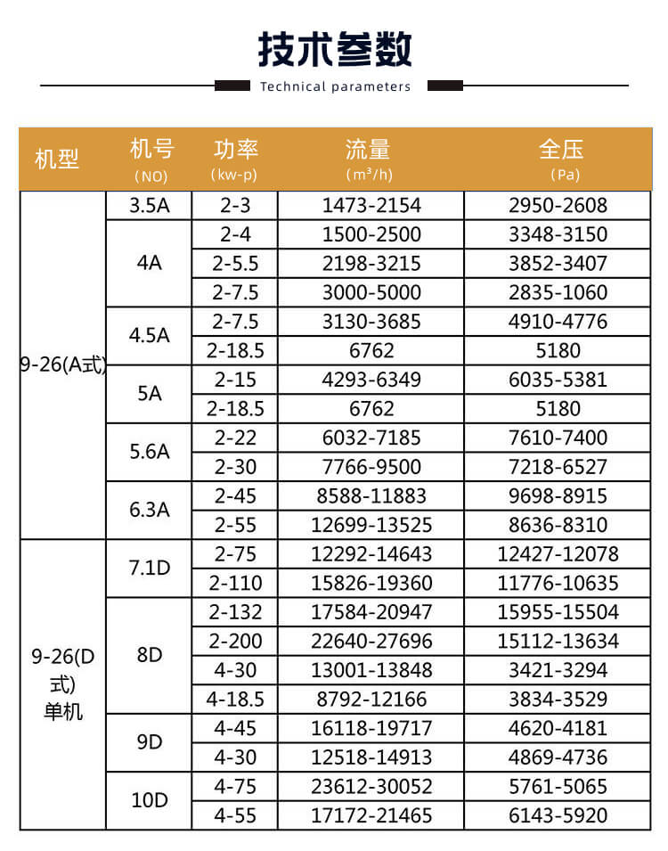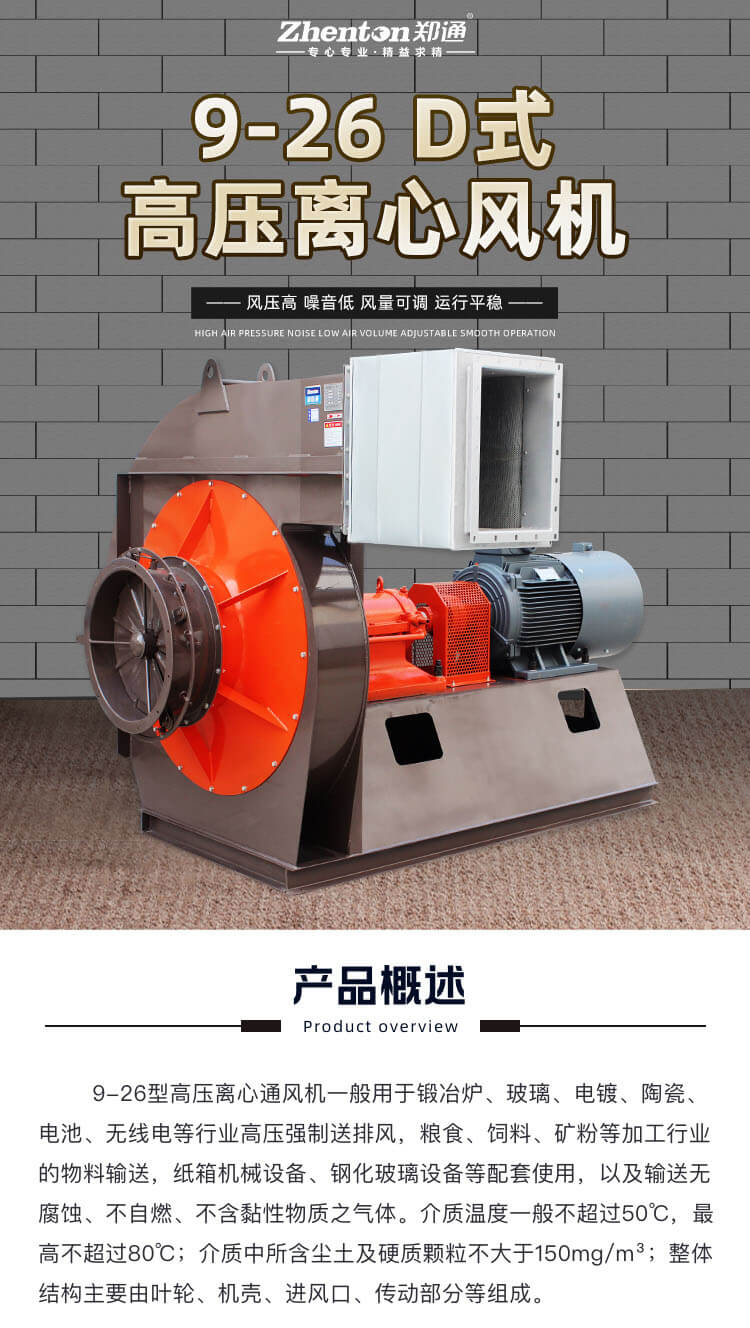 9-26-D系列離心式通風機,具有風壓高,效率高,效率區寬,結構緊湊,運行可靠等優點。廣泛用于高壓強制通風,如鍛治爐等場合。