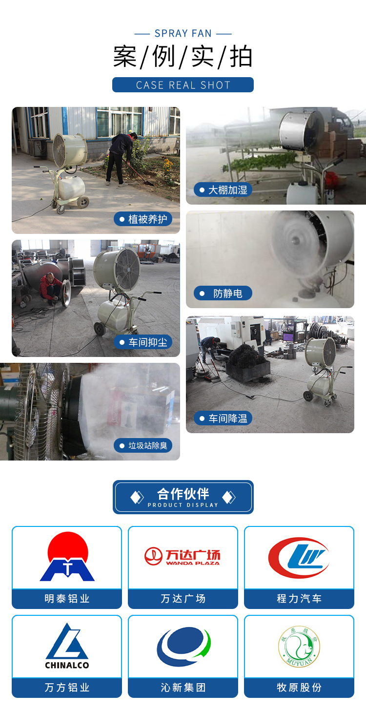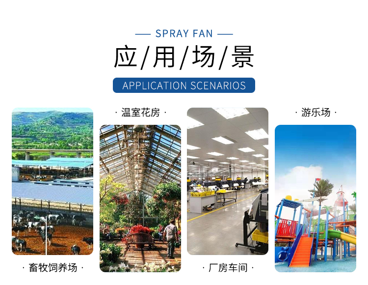 本產品適用于畜牧飼養場、工廠企業、溫室、廠房(木材加工),紡織業車間、印刷車間、烤漆房、污水處理、礦山、冶煉、陶瓷、室外游樂場等各類環境,從而達到除臭、防塵、空氣清新的效果。