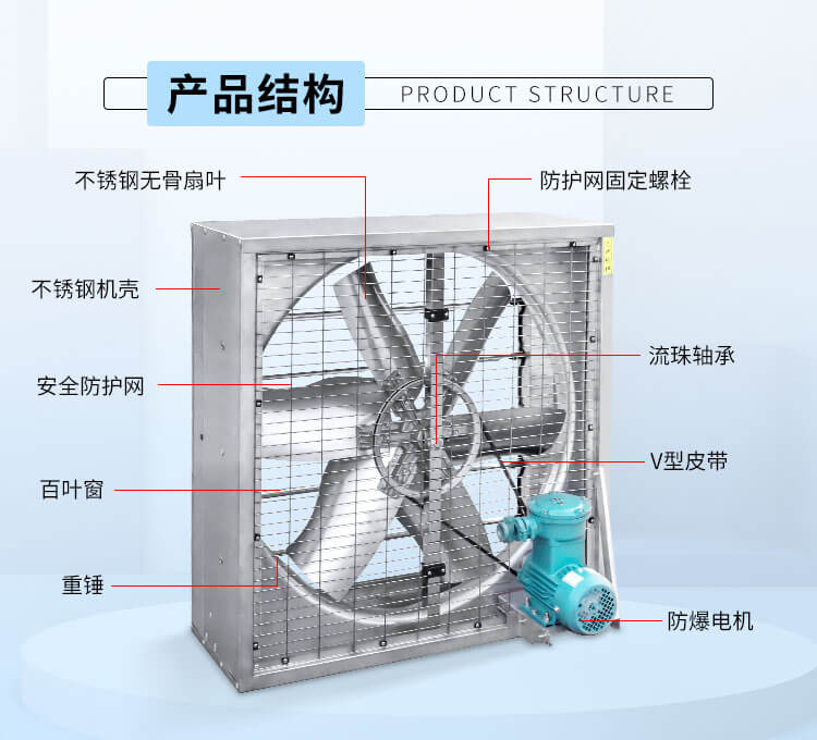 整機采用CAD/CAM設計,具有投資成本低、風量大、噪音低、耗能小、運行平穩、壽命長、效率高等特點,百葉窗自動起閉,防塵、防水、美觀大方;既可吹風,也可抽風,是現代化車間降溫通風的首選,能耗小的負壓風機也是通風降溫設備的市場主流。 負壓式風機是利用空氣對流、負壓換氣的氣壓差原理,由安裝地點的對向大門或窗戶自然吸入新鮮空氣,將室內悶熱氣體迅速強制排出室外,任何通風不良問題均可改善,降溫換氣效果可達90%-97%。具有投資少、耗能低、通風降溫效果顯著等特點。