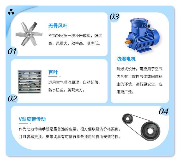 適用于高溫或有異味的車間,勞動密集型企業,園藝溫室大棚、畜牧場、倉儲物流等需要通風降溫或一定濕度的領域,如熱處理廠、皮件廠、電鍍廠、印染廠、車間、網吧、棉紡廠、毛紡廠等。