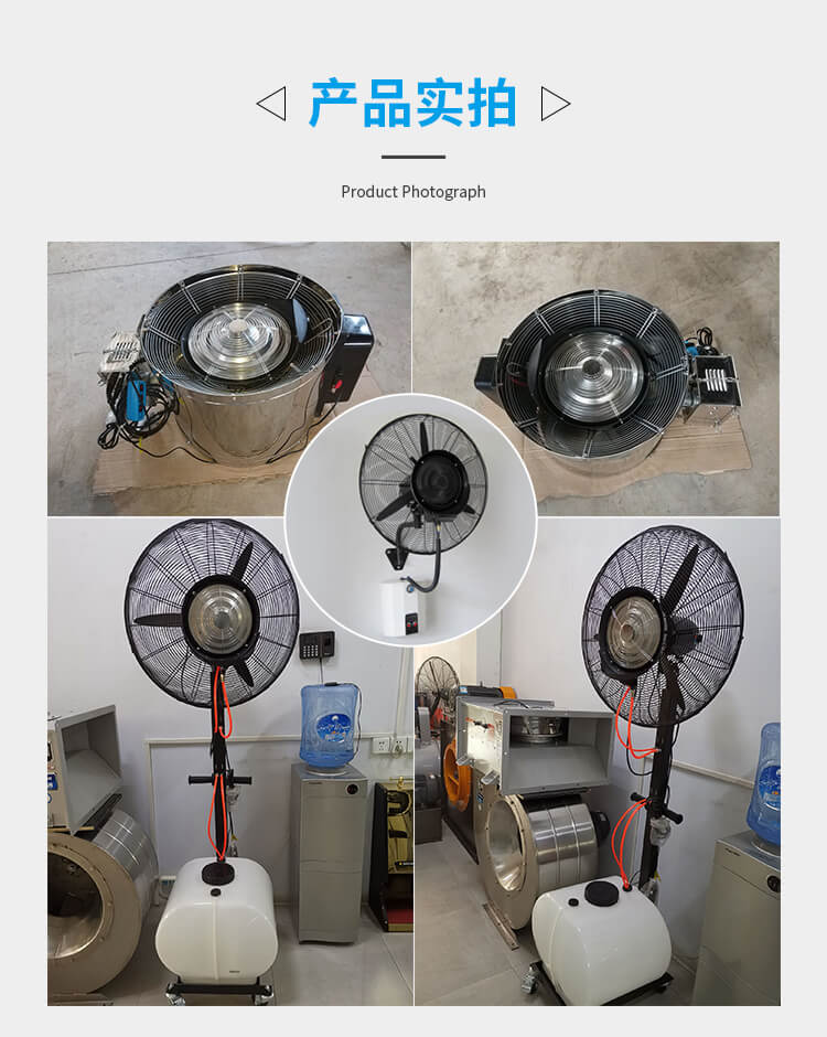 離心式霧化設計,無需噴嘴和水過濾裝置防水電氣設計,使用安全霧化大小可隨意調節、噪音低配有手推車,移動便捷。