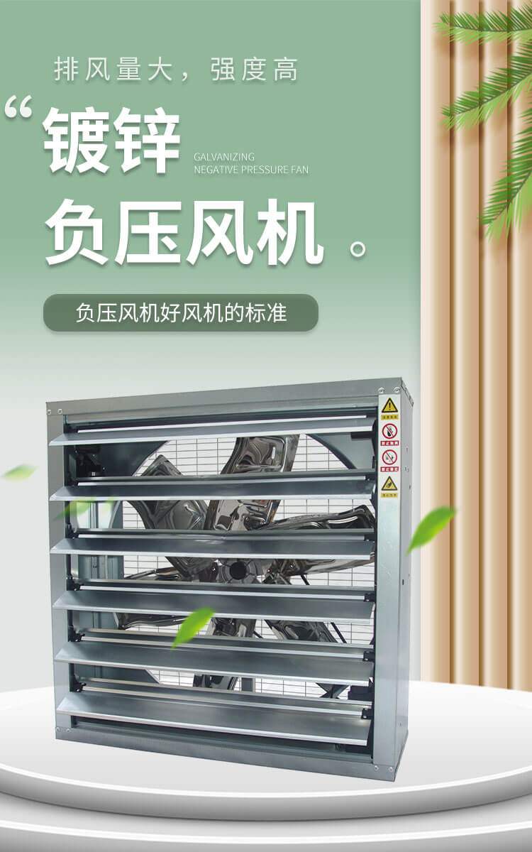 鍍鋅板負壓風機具有大風量、低能耗、低轉速、低噪音、防塵防雨等優勢。