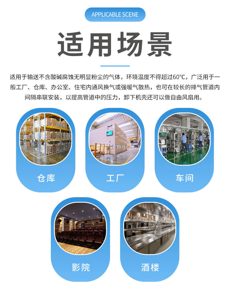 適用于工礦企業(yè)、賓館等大型場(chǎng)所通風(fēng)換氣及中央空調(diào)、潔凈設(shè)備、緊湊型風(fēng)機(jī)盤(pán)管機(jī)組的配套。