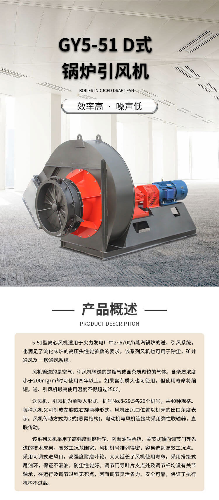 GY5-51鍋爐引風機廣泛應用于電力、冶金、化工、建材等行業,主要配套工業鍋爐、電站鍋爐、工業除塵器、工業脫硫等系統用風機。