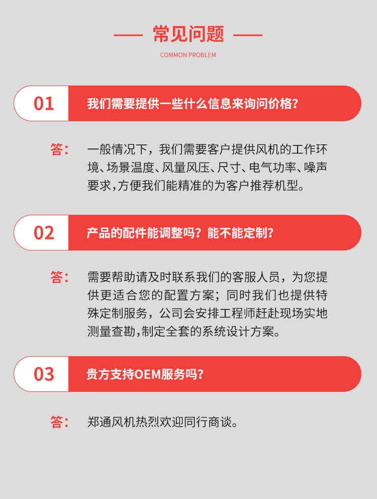 風機電機采用F級/H級絕緣,F級適合環境最高溫度不超過90°C(H級不超過120"C),電動機軸承采用耐高溫密封軸承軸承潤滑油滴點溫度≥230°C,防護等級IP56以上。可復位超然保護,電機運行壽命長,連續運轉超過15000小時仍能正常使用。 風機風葉為CAD優化設計,可調節鋁合金葉片,結構合理美觀大方,采用優質鋁合金材料壓鑄加工而成。風葉角度由流體力學專家專門設計,因此風量大、噪音小、效率高、運行穩定。 風機采用戶外專用塑粉,靜電噴粉工藝,色澤持久。