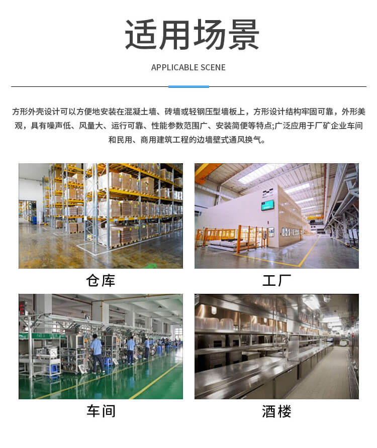 方形壁式軸流風(fēng)機(jī)低噪聲方形壁式邊墻軸流風(fēng)機(jī)殼體材質(zhì)為優(yōu)質(zhì)鍍鋅鋼板制成,并做防潮防銹靜電噴塑;面板風(fēng)口材質(zhì)為鋁合金或PVC材質(zhì),做純白色噴塑處理。整機(jī)美觀,安裝維護(hù)簡(jiǎn)單方便,振動(dòng)小噪聲低,排風(fēng)量大,節(jié)能高效實(shí)用壽命長(zhǎng)。