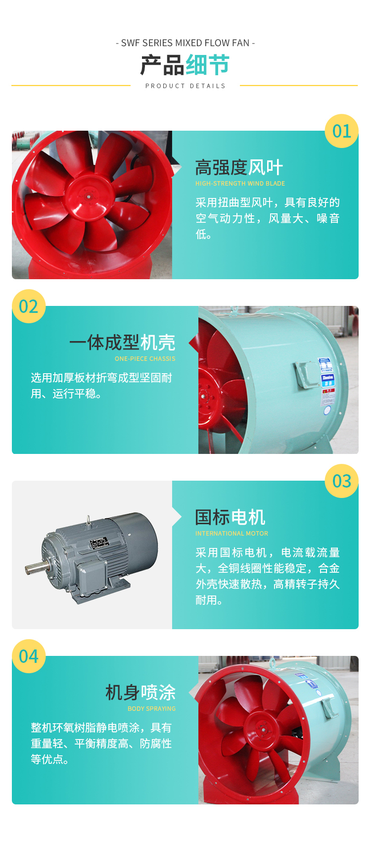 SWF型混流風機多用于冷凍、空調、紡織、船舶、民用建筑等空調工程通風換氣,普通材質風機可輸送空氣和腐蝕性、不自燃的氣體。